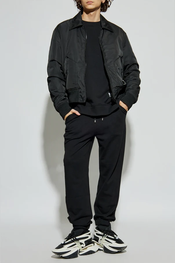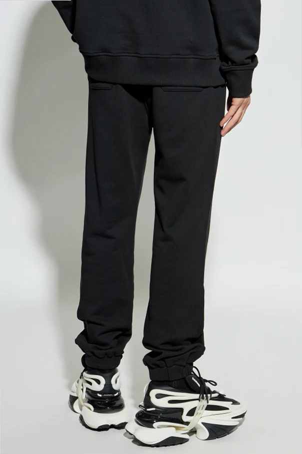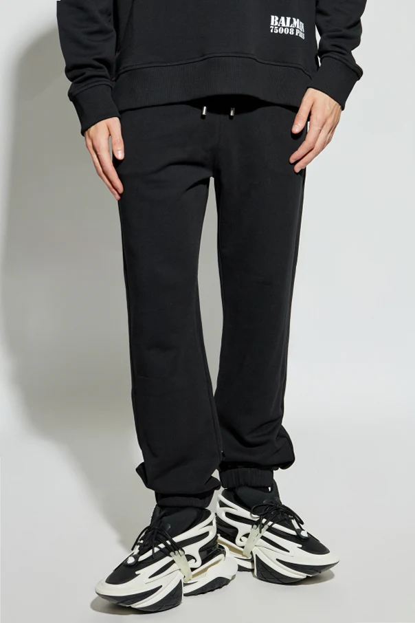 Spodnie dresowe z nadrukowanym logo marki Balmain to ucieleśnienie wyrafinowanej prostoty oraz komfortu w codziennym wydaniu. Klasyczny fason o zwężanych nogawkach i elastycznych ściągaczach na kostkach subtelnie podkreśla sylwetkę, zapewniając jednocześnie swobodę ruchów. Wykonanie z miękkiej, szlachetnej dzianiny bawełnianej gwarantuje wyjątkową przyjemność noszenia oraz trwałość, charakterystyczną dla ekskluzywnych kolekcji francuskiego domu mody.