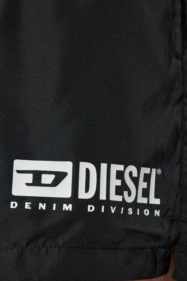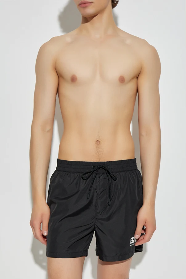 Wykonane z wysokogatunkowego, syntetycznego materiału o lekko połyskującej powierzchni, szorty zachwycają szybkoschnącą strukturą oraz niebywałą trwałością. Dominująca czerń subtelnie kontrastuje z białym, rozpoznawalnym logo Diesel i napisem "DENIM DIVISION" na lewej nogawce – znak najwyższej jakości oraz prestiżu.