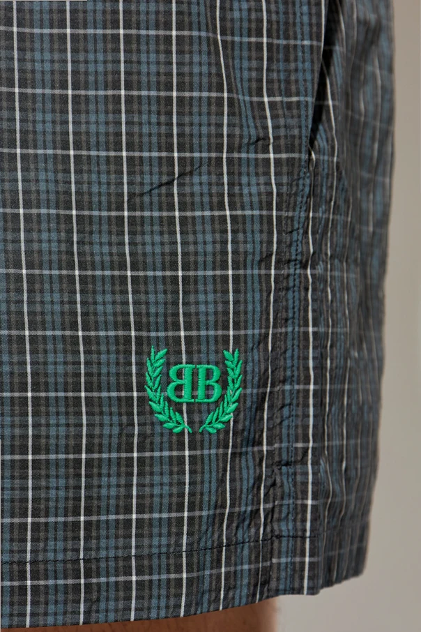 Szlachetną pieczęcią jakości jest haftowane logo — podwójna litera „B” w jasnej zieleni, otoczona wieńcem laurowym — będące znakiem rozpoznawczym legendarnych kreacji Balenciaga.