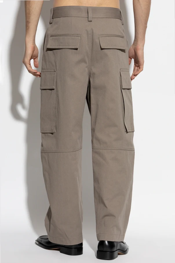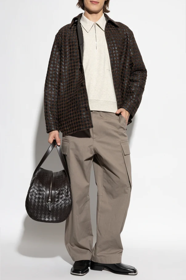Spodnie typu cargo marki Bottega Veneta to niezwykle wyrafinowana propozycja dla mężczyzn ceniących zarówno komfort, jak i bezkompromisową elegancję. Klasyczny, lekko oversize’owy krój z prostą, szeroką nogawką zapewnia swobodę ruchu oraz współczesny sznyt, zaś jednolity, gładki materiał o matowym wykończeniu zachwyca subtelnym charakterem.