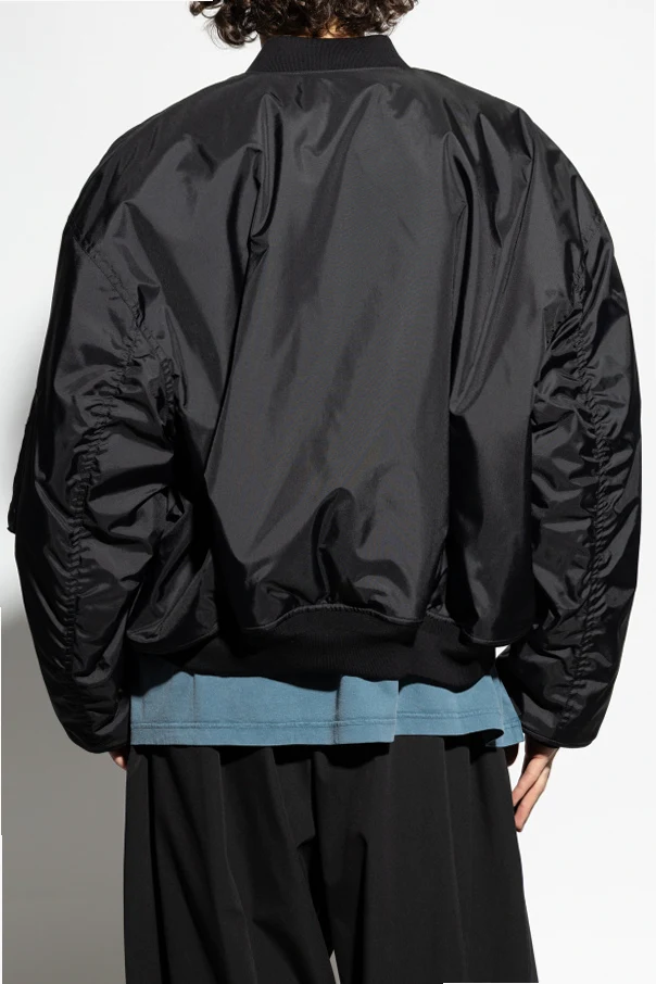 Kurtka typu bomberka marki Balenciaga to kwintesencja współczesnej elegancji i odważnej formy, wyrażająca hołd dla wyrafinowanego dziedzictwa tego wyjątkowego domu mody. Precyzyjnie skonstruowany fason charakteryzuje się klasyczną linią ramion , dynamicznym, lekko oversize’owym krojem oraz krótką, energiczną sylwetką. Błyszczący, techniczny materiał o szlachetnej fakturze został podkreślony przez solidny, srebrzysty zamek i ukośnie wszyte kieszenie z przodu, a marszczenia wzdłuż rękawów nadają całości wyjątkowej głębi. Charakterystyczna kieszeń na rękawie, zamykana na zamek błyskawiczny, dopełnia funkcjonalny wyraz kurtki, w której tradycja przeplata się z nowoczesnym rzemiosłem.
