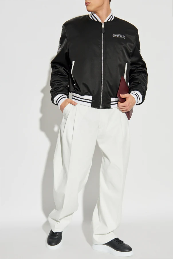 Kurtka typu bomber autorstwa Alexandra McQueena to wyraz kunsztu współczesnego krawiectwa, czerpiącego inspiracje z tradycji i awangardy. Fason ten cechuje się klasycznym, krótkim krojem z lekko poszerzanymi ramionami oraz perfekcyjnie wykończonymi ściągaczami przy mankietach, kołnierzu i dolnym brzegu.