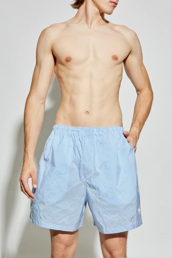 Szorty kąpielowe z ekskluzywnej kolekcji zachwycają ponadczasową elegancją i subtelną paletą jasnoniebieskich tonów, delikatnie przełamanych bielą pionowych pasków. Klasyczny fason z luźniejszą nogawką do połowy uda i komfortowym, elastycznym pasem idealnie łączy wygodę z wyrafinowanym stylem plażowym.