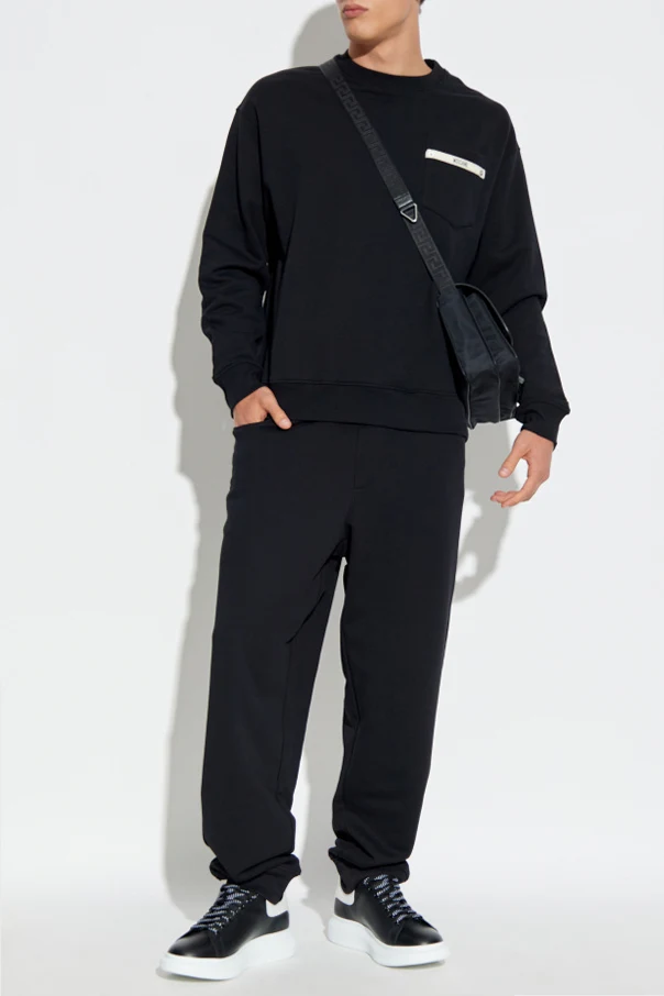Spodnie dresowe marki Moschino to kunsztowne połączenie klasyki i nowoczesności. Czerń, jako kolor dominujący, nobilituje ten model, podkreślając jego uniwersalność i ponadczasowy charakter. Klasyczny, lekko zwężany fason z długą nogawką został zwieńczony elastycznym ściągaczem, oferując wyjątkowy komfort noszenia bez utraty elegancji.