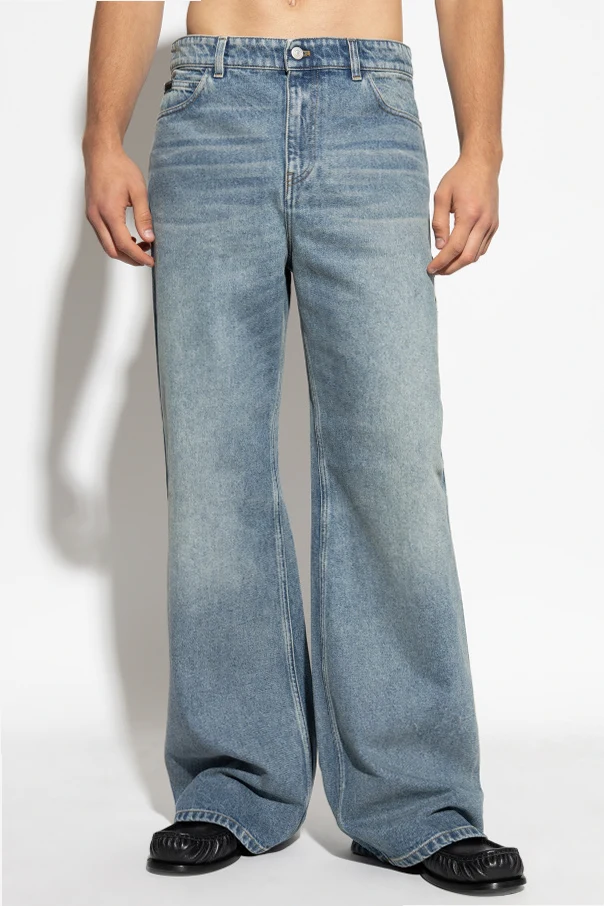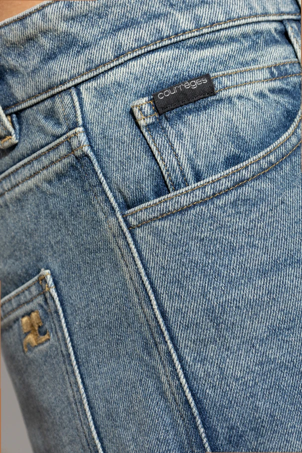 Jeansy z logo marki Courrèges to wyraz nowoczesnej elegancji zainspirowanej francuskim dziedzictwem. Wyjątkowy fason bootcut, z wyraźnie rozszerzanymi nogawkami oraz lekko obniżonym stanem, podkreśla swobodny, a zarazem szlachetny charakter kolekcji. Niebieski, klasyczny denim o subtelnych rozjaśnieniach na udach i kolanach, zachwyca precyzyjnym wykończeniem i sztywną, wysokogatunkową tkaniną bawełnianą.