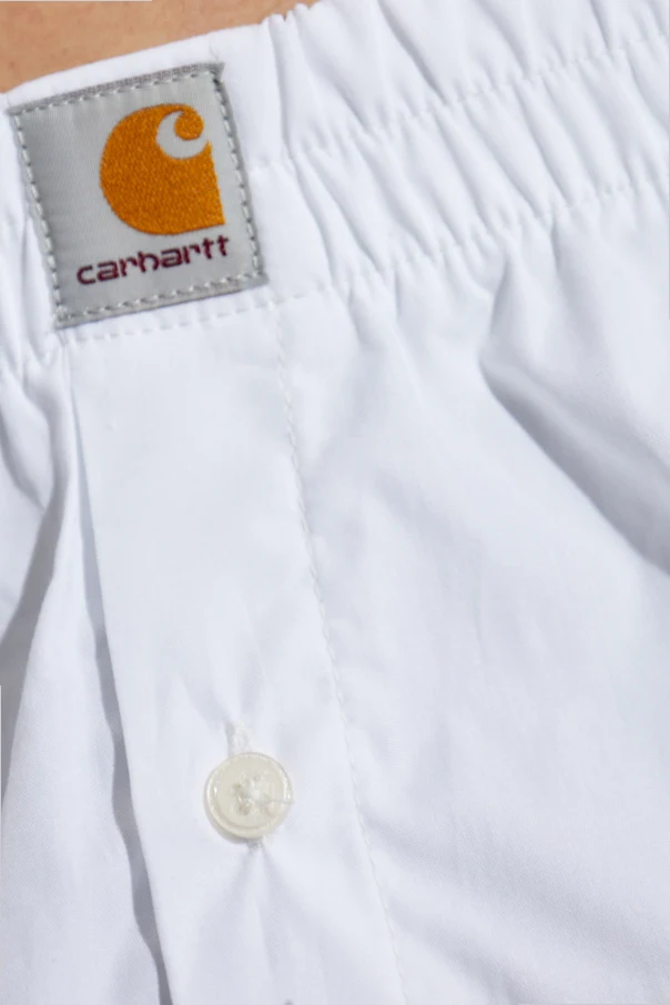 Bokserki z logo Carhartt WIP zachwycają czystością formy oraz szlachetną bielą. Klasyczny, luźny krój o krótkich nogawkach i szerokiej, elastycznej gumce zapewnia maksymalny komfort na co dzień. Gładka, lekko połyskująca struktura tkaniny świadczy o zastosowaniu wysokogatunkowej bawełny, co podkreśla ekskluzywny charakter produktu.