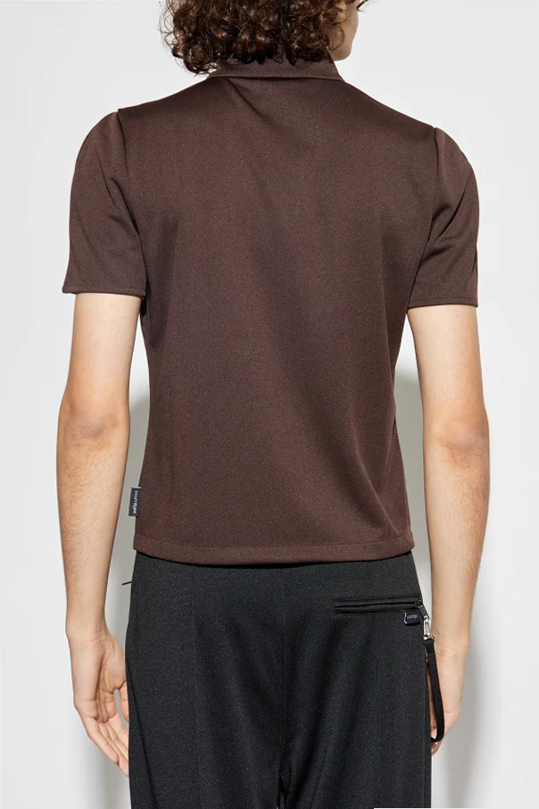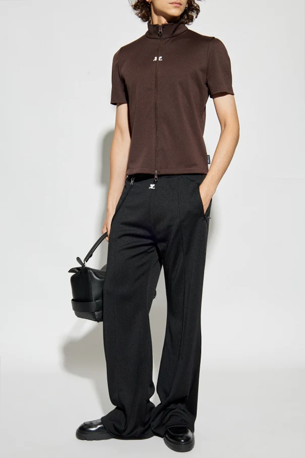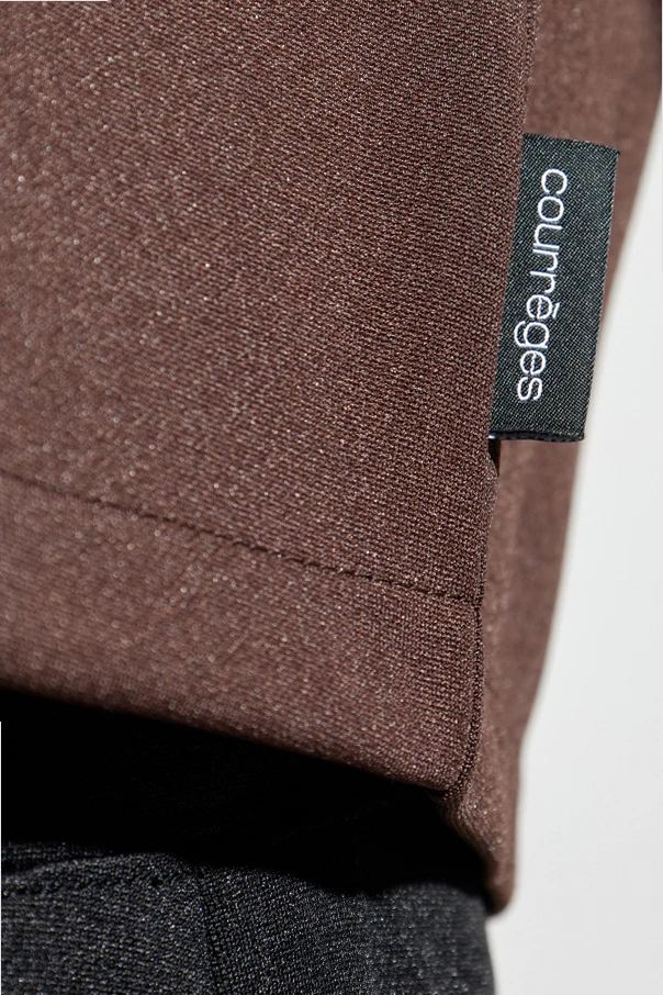 Bluza z logo marki Courrèges to kwintesencja nowoczesnej elegancji ujętej w minimalistycznej formie. Dominujący, głęboki odcień brązu oraz krótki, perfekcyjnie dopasowany fason podkreślają sylwetkę i emanują wyrafinowaniem. Lekko elastyczny, subtelnie połyskujący materiał zachwyca gładkością oraz rzemieślniczą precyzją wykonania, wprowadzając luksus w codzienność.