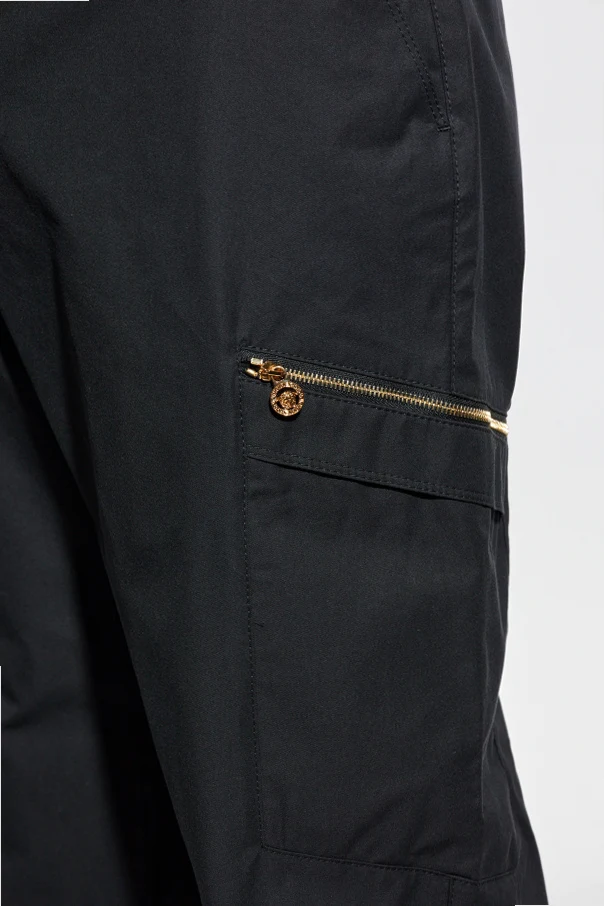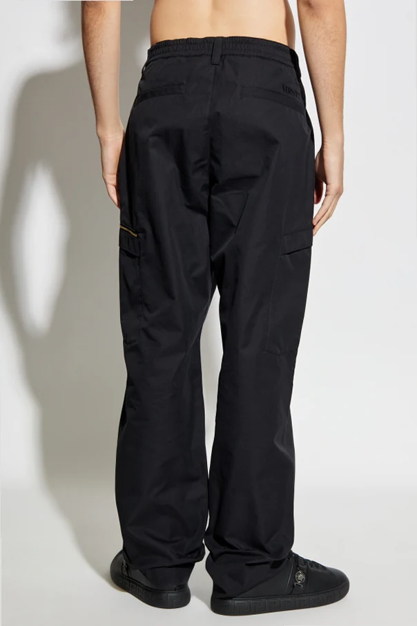 Spodnie typu cargo z ekskluzywnej kolekcji Versace to wyraz szlachetnej elegancji połączonej z nowoczesnym, swobodnym stylem. Klasyczna linia z lekko luźną, prostą nogawką zapewnia wyrafinowany wygląd, jednocześnie gwarantując pełną swobodę ruchów. Minimalistyczna forma, pozbawiona zbędnych zdobień, uwydatnia luksusowy charakter oraz ponadczasowy styl produktu.