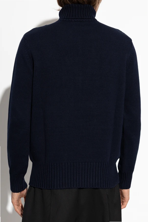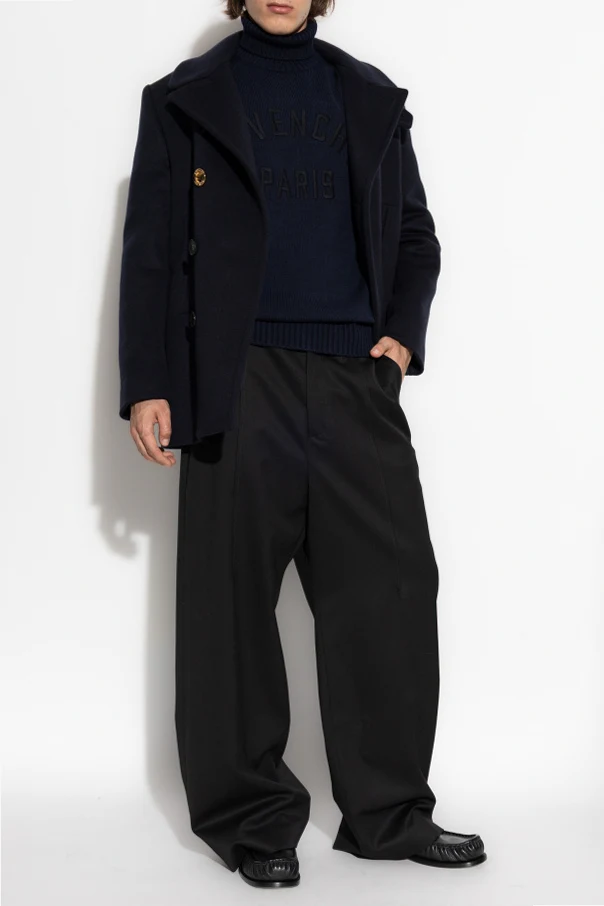 Golf z logo autorstwa Givenchy to współczesna interpretacja klasyki, łącząca prostotę formy z wyrafinowaną elegancją. Jednokolorowa dzianina z wyraźną prążkowaną strukturą przy kołnierzu, mankietach i dole, tworzy wysublimowany efekt, który zachwyca subtelnym blaskiem naturalnej bawełny.