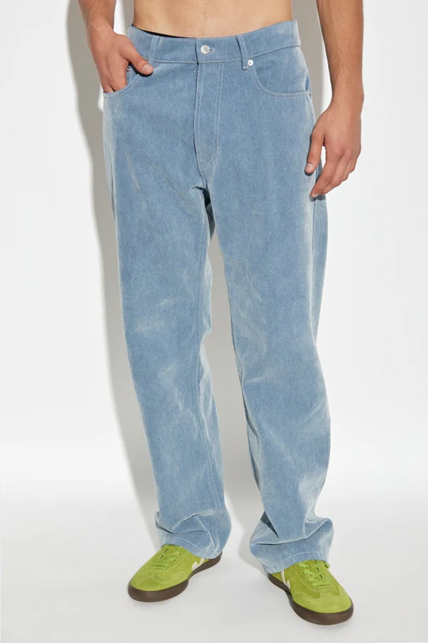 Jeansy typu „straight” marki Moschino to kwintesencja klasyki utrzymanej w duchu wyrafinowanej swobody. Pięć kieszeni w tradycyjnym rozmieszczeniu i starannie dobrane wykończenia – srebrne nity oraz metalowy guzik – podkreślają ponadczasowy charakter fasonu. Materiał o wyrazistej fakturze, stworzony z wysokogatunkowej bawełny z domieszką wiskozy, zapewnia subtelną strukturę bez udziału elastycznych włókien, gwarantując absolutną autentyczność denimu.