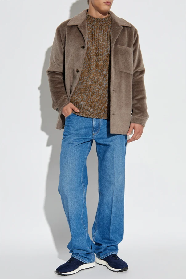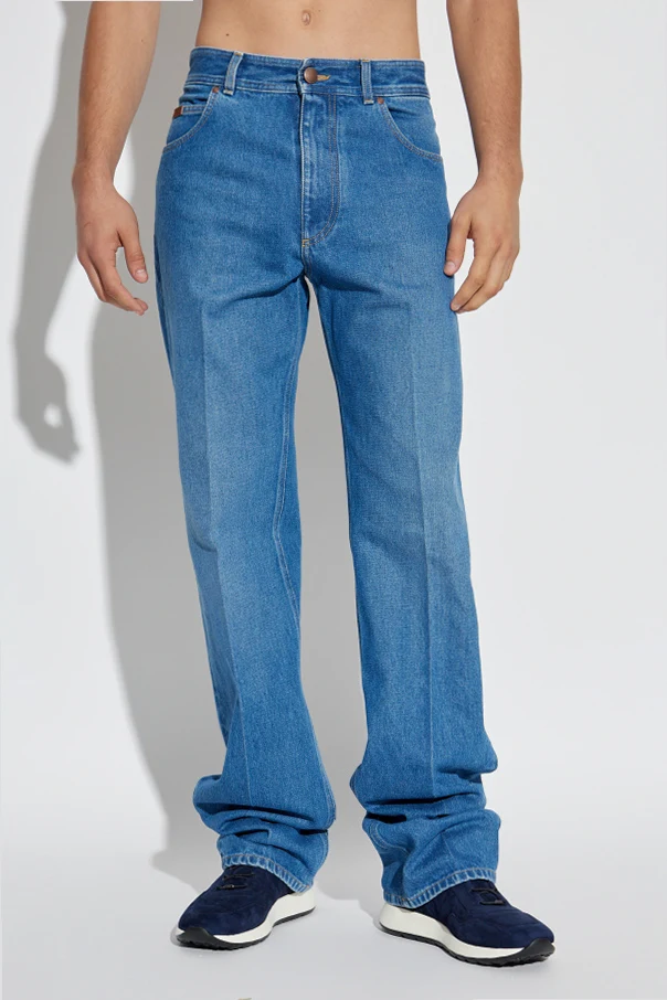 Uszyty z grubej, szlachetnej bawełny, bez domieszki stretchu, model zachowuje oryginalną sztywność i autentyczność materiału, co czyni go wyjątkowo trwałym. Elegancji dodają perfekcyjnie odszyte pionowe kanty oraz wysmakowana, brązowa naszywka z logo projektanta, subtelnie umieszczona nad kieszonką na drobne.