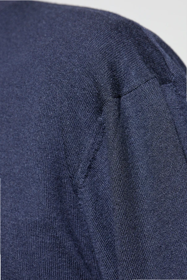 Okrągły dekolt oraz starannie wykończone ściągacze na dole i przy mankietach dopełniają całości, eksponując dbałość o każdy detal. Granatowa barwa nadaje mu uniwersalny, dostojny charakter.