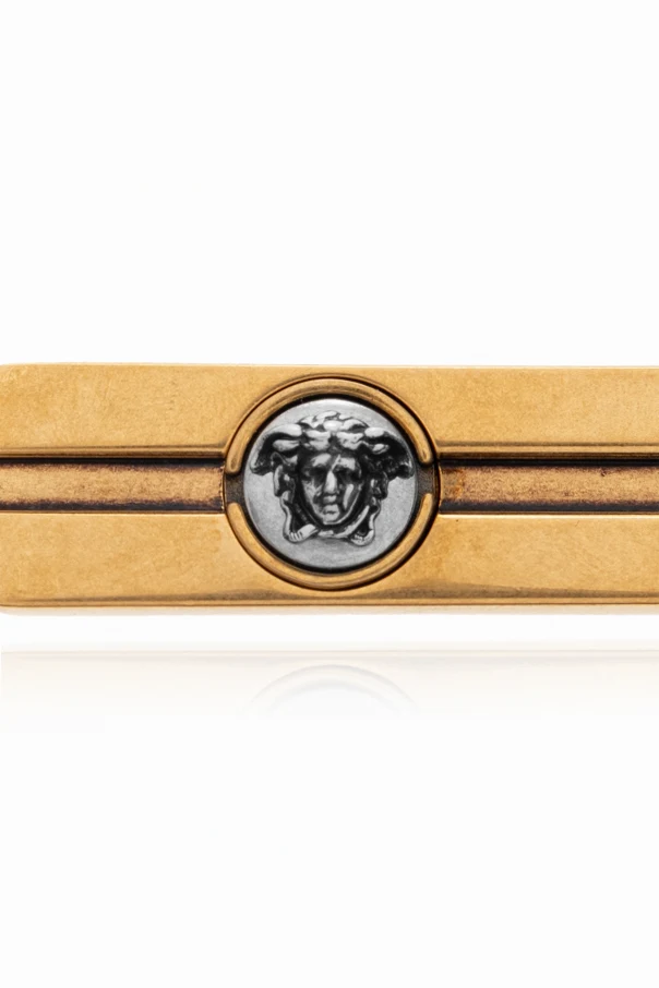 Na froncie spinki zachwyca okrągłe, srebrzyste zdobienie z motywem głowy Meduzy – ikonicznym symbolem marki Versace, która od dziesięcioleci definiuje standardy w świecie luksusu. Perfekcyjnie polerowany mosiądz emanuje majestatycznym złotym blaskiem, a mistrzowskie połączenie klasycznej elegancji z unikalnym detalem czyni ten dodatek niepowtarzalnym wyborem dla mężczyzny ceniącego wysublimowany styl.