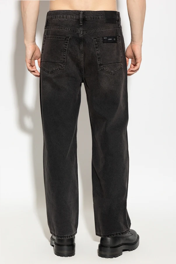 Uszyte z czarnego, grubego denimu bez domieszek stretchu, spodnie wyróżniają się nie tylko trwałością, lecz także szlachetną, lekko spraną strukturą materiału. Subtelne przetarcia oraz kontrastujące, solidne przeszycia nadają im własny, vintage’owy charakter. Tradycyjny układ pięciu kieszeni, zapięcie na guzik i suwak oraz dyskretna, czarna naszywka na tylnej kieszeni podkreślają dbałość o detale.