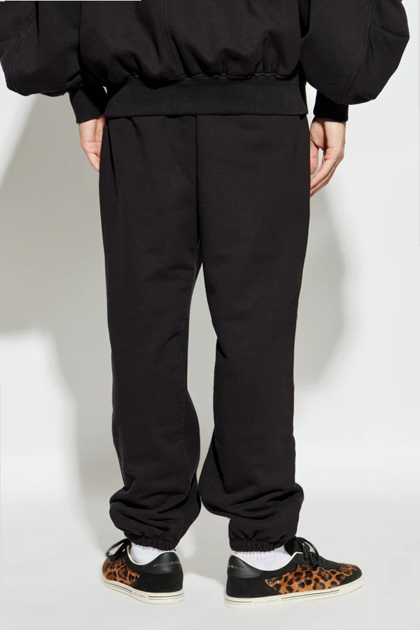 Spodnie dresowe ze ściągaczem w nogawkach marki Dolce & Gabbana stanowią uosobienie subtelnej elegancji i komfortu. Wykonane z wysokogatunkowej bawełny, zachwycają miękkością oraz lekko matową strukturą , zapewniając wyjątkowe doznania podczas codziennego użytkowania.