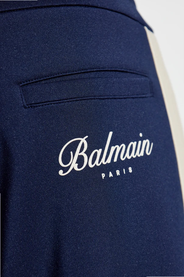 Spodnie dresowe z nogawkami o prostym kroju, pochodzące z ekskluzywnej kolekcji Balmain , są synonimem połączenia wyrafinowanego stylu z nutą sportowej elegancji. Granatowa tonacja, wzbogacona subtelnymi, kontrastowymi lampasami wzdłuż boków nogawek, współgra ze starannie dobranym krojem, akcentującym wygodę i ponadczasową uniwersalność.