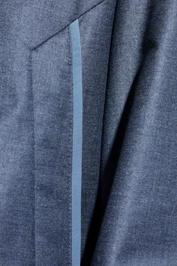 Jednolity odcień niebieskiego z dyskretnym melanżowym efektem oraz satynowa struktura tkaniny niezaprzeczalnie wyróżniają kurtkę wśród męskich okryć wierzchnich. Szlachetna mieszanka wełny i jedwabiu w warstwie zewnętrznej harmonijnie współgra z podszewką z wiskozy oraz poliestru, dając gwarancję luksusu i wytrzymałości. Centralnie umieszczony, metalowy suwak o podwójnym mechanizmie to detal dla koneserów nowoczesnej funkcjonalności.
