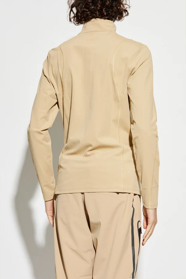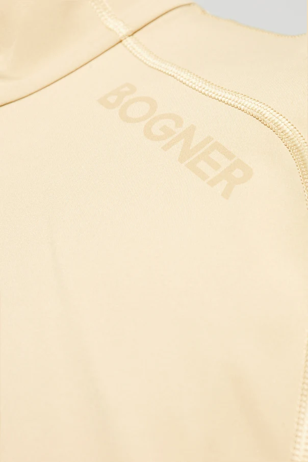 Wykonana z najwyższej próby elastycznego materiału technicznego, bluza zachwyca gładkością dzianiny oraz wyrazistymi przeszyciami podkreślającymi sylwetkę. Beżowy odcień, jednolity i pozbawiony zbędnych aplikacji, został uzupełniony delikatnym, matowym logo projektanta „BOGNER”, umieszczonym ton w ton na wysokości barku, co podkreśla ekskluzywny charakter produktu.