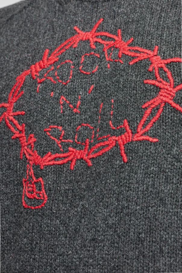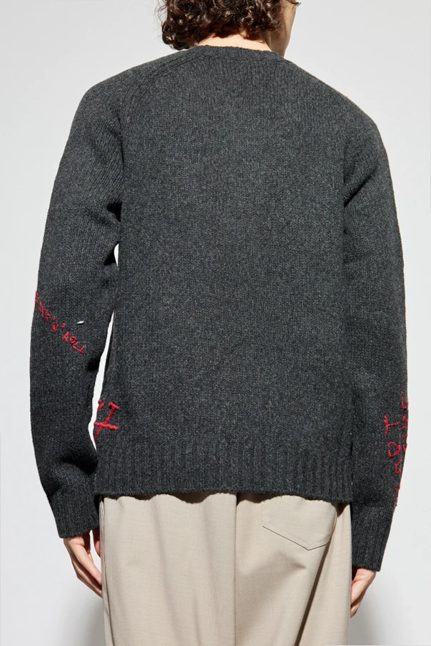 Wyjątkowe, ręcznie haftowane zdobienia nadające swetrowi unikalności.