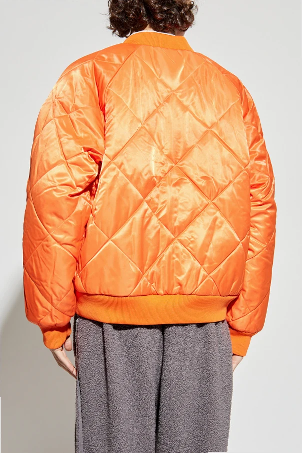 Strona dominująca, szara , wykonana została z przyjemnego w dotyku materiału typu baranek, oferując subtelną fakturę i prostotę. Ozdobę stanowią trzy charakterystyczne, równoległe paski wzdłuż rękawów – emblemat marki. Po odwróceniu, pikowana strona w kolorze pomarańczowym olśniewa geometrycznym wzorem i satynowym połyskiem, zapewniając niepowtarzalną uniwersalność stylizacyjną.