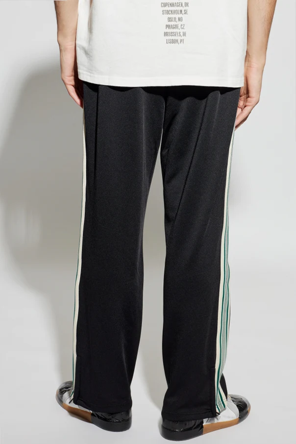 Spodnie z lampasami marki Represent to wyrafinowany wybór dla miłośników nowoczesnej, sportowej elegancji. Klasyczna, luźna linia z prostymi nogawkami została subtelnie wzbogacona szerokimi, jasno-kremowymi lampasami z trzema smukłymi zielonymi paskami, co tworzy efekt godny najbardziej luksusowej garderoby. Miękki, lejący materiał o subtelnym połysku oraz szeroki, elastyczny pas gwarantują niebywałą wygodę noszenia.