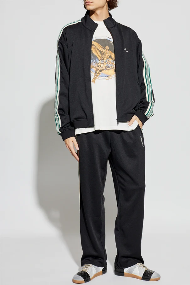 Bluza z logo marki Represent stanowi połączenie ponadczasowej elegancji i sportowego stylu. Dominujący czarny kolor subtelnie kontrastuje z efektownymi lampasami wzdłuż rękawów, utrzymanymi w biało-zielonej kolorystyce, co nadaje projektowi unikatowy, dynamiczny charakter. Klasyczny, delikatnie luźniejszy fason typu track jacket został wyposażony w pełny zamek błyskawiczny oraz starannie wykonane boczne kieszenie na zamek, oferując praktyczność na co dzień.