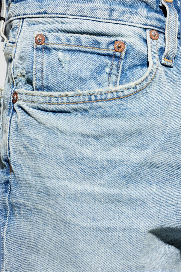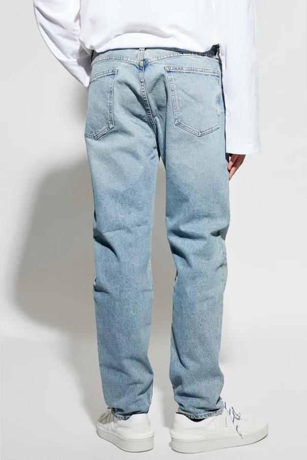 Jeansy „Curtis” autorstwa AGOLDE to kwintesencja ponadczasowej elegancji połączonej z wyrafinowaną prostotą. Wykonane z klasycznego denimu, o sztywnej strukturze, odsłaniają autentyczny, vintage’owy charakter. Jasnoniebieski kolor z delikatnym efektem sprania subtelnie podkreśla szlachetność materiału i stanowi doskonałe tło dla wyrazistych, karmelowych szwów oraz dyskretnych, miedzianych nitów.