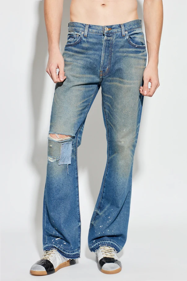 Jeansy z logo od GALLERY DEPT. to wyraz współczesnej elegancji, inspirowanej klasyką. Model o kroju bootcut – lekko rozszerzane ku dołowi nogawki – został uszyty z wytrzymałego, mięsistego denimu z czystej bawełny , bez dodatku elastycznych włókien, co zapewnia niepowtarzalną autentyczność i trwałość.