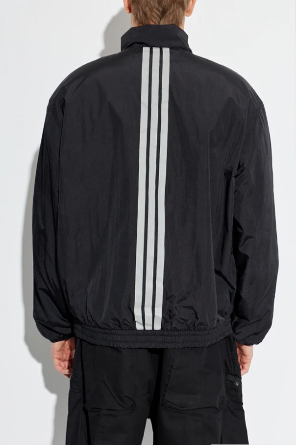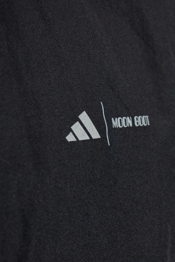 Kurtka w głębokim, czarnym kolorze wyróżnia się stonowaną gładkością oraz charakterystycznymi detalami – na piersi znajduje się białe logo ADIDAS i napis "MOON BOOT", a tył zdobią trzy szerokie, odblaskowe pasy tej renomowanej marki. Praktyczne elastyczne ściągacze oraz pełen zamek dbają o komfort i funkcjonalność, podkreślając równocześnie ponadczasowy styl produktu.