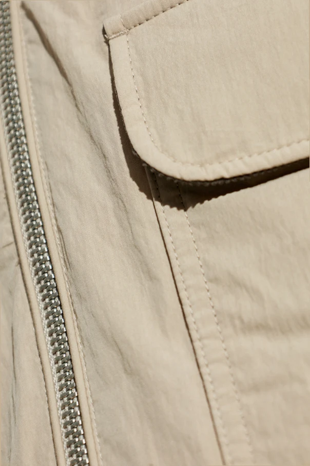 Model o regularnym kroju z naturalnie opuszczonymi ramionami prezentuje się wyjątkowo lekko i casualowo. Przemyślana konstrukcja wzbogacona została dwoma dużymi kieszeniami z klapami, które podkreślają funkcjonalność i elegancką prostotę projektu. Kurtka wykonana została z gładkiej, przyjemnej w dotyku mieszanki bawełny i poliamidu, z dopracowaną, matową powierzchnią.