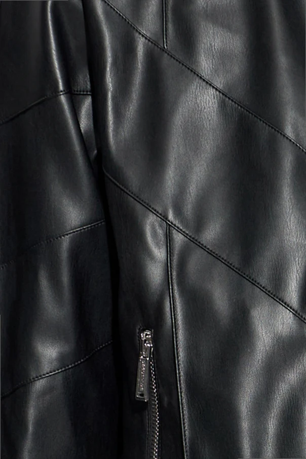 Geometryczne, ukośne przeszycia tworzą harmonijną kompozycję na całej powierzchni, a efektowny srebrny zamek błyskawiczny dopełnia całość. Centralne przeszycie na plecach z wytłoczonym logo projektanta – kunsztownie wkomponowane w eco skórę – akcentuje unikatowość produktu.