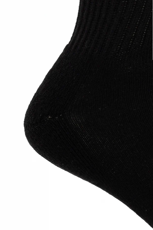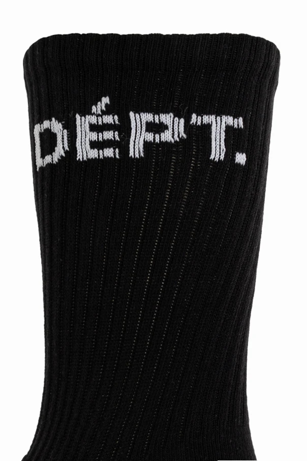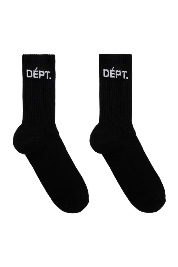 Czarne skarpety z logo marki Gallery Dept. to propozycja dla znawców wytwornej prostoty i nieprzeciętnej jakości. Klasyczne, długie skarpety wykonano z miękkiej bawełny z dodatkiem elastycznych włókien, co zapewnia wyjątkowy komfort oraz doskonałe dopasowanie. Subtelność minimalistycznego wzornictwa przełamuje wyraziste, białe logo „DÉPT.” , starannie osadzone na żebrowanym ściągaczu.