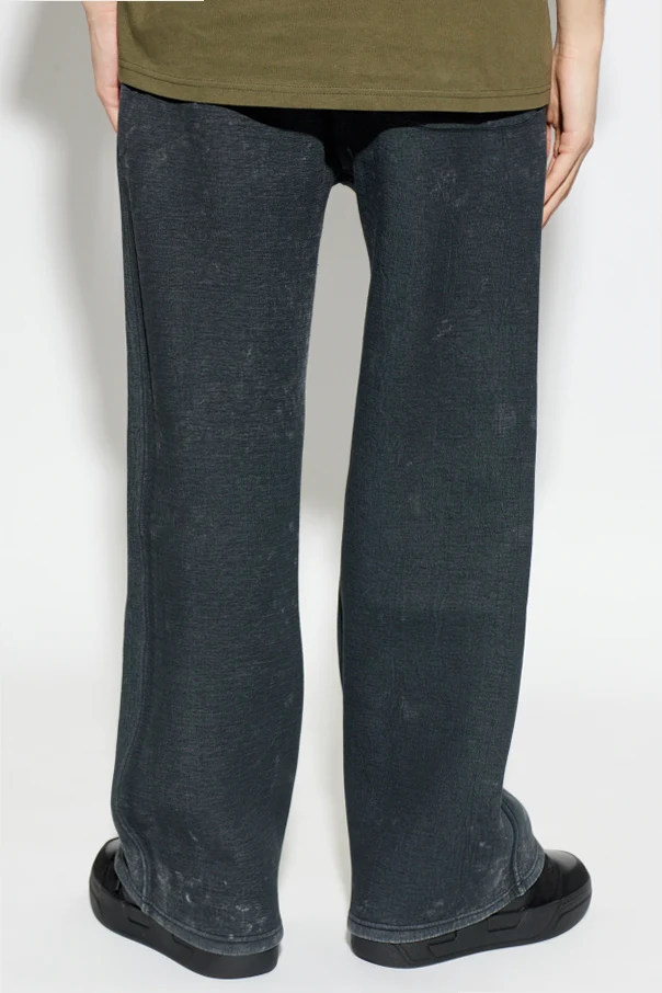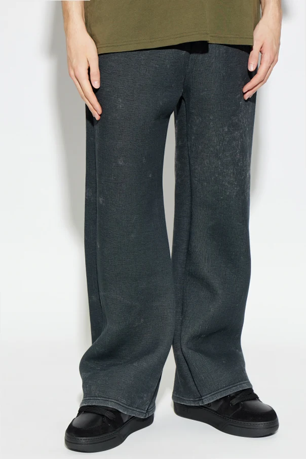 Spodnie dresowe ‘P-CHAN’ autorstwa Diesel to esencja nowoczesnej elegancji w wydaniu casualowym. Wyróżniają się komfortowym, prostym fasonem z szerokimi nogawkami, które doskonale wpisują się w aktualne trendy miejskie. Tkanina z wyraźną strukturą, o efekcie postarzenia, nadaje całości unikatowego charakteru i surowości, a wybrany szary odcień podkreśla ekskluzywny styl projektu.