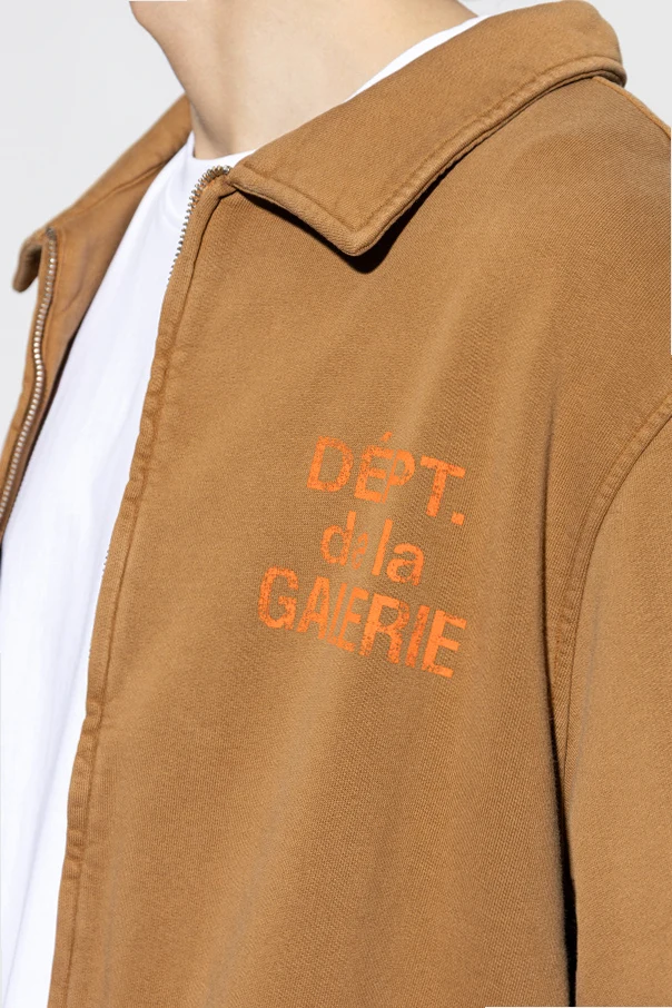 Ten model w kolorze brązowym został wzbogacony o klasyczny, wykładany kołnierz. Wyrazisty napis “DÉPT. de la GALERIE” w odcieniu pomarańczowym, umieszczony na piersi oraz spektakularnie wyeksponowany na plecach, zapisuje kurtkę wśród ikon stylu. Dodatkowym smaczkiem jest naszywana metka na lewym rękawie – dyskretny akcent dla znawców.