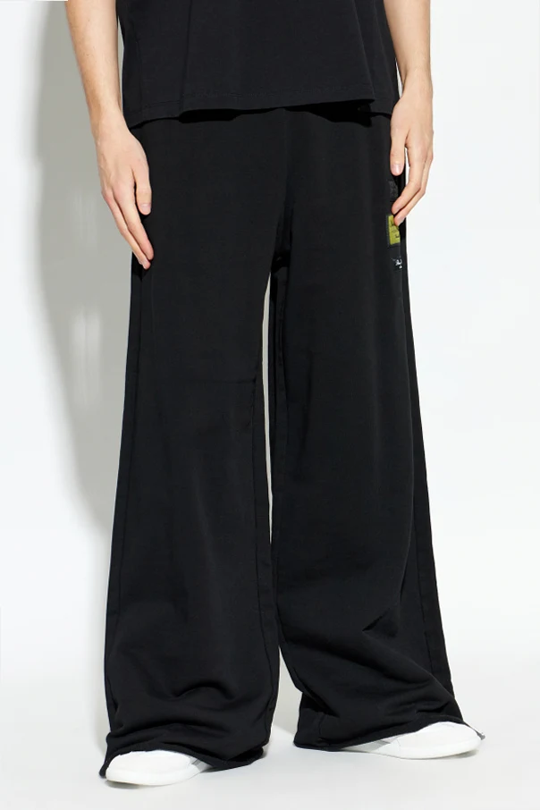 Spodnie dresowe z naszywką logo od MM6 Maison Margiela to kwintesencja współczesnej mody konceptualnej, inspirowanej nurtem awangardy. Prosty, luźny fason o szerokich nogawkach subtelnie eksponuje sportowy charakter, jednocześnie oferując wyjątkową wygodę noszenia i swobodę ruchów.
