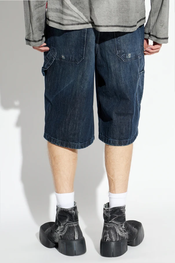 Jeansowe szorty ‘D-LIVERY-W-SHORT’ stworzono z myślą o osobach ceniących harmonijną syntezę wygody i miejskiego szyku. Model wyróżnia się granatowym odcieniem klasycznego denimu o wyrazistej strukturze, przełamanym subtelnym marmurkowym cieniowaniem w stylu vintage. Przemyślany, lekko oversize’owy fason z szerokimi nogawkami oraz długością za kolano sprawia, iż szorty zapewniają niebywały komfort noszenia.