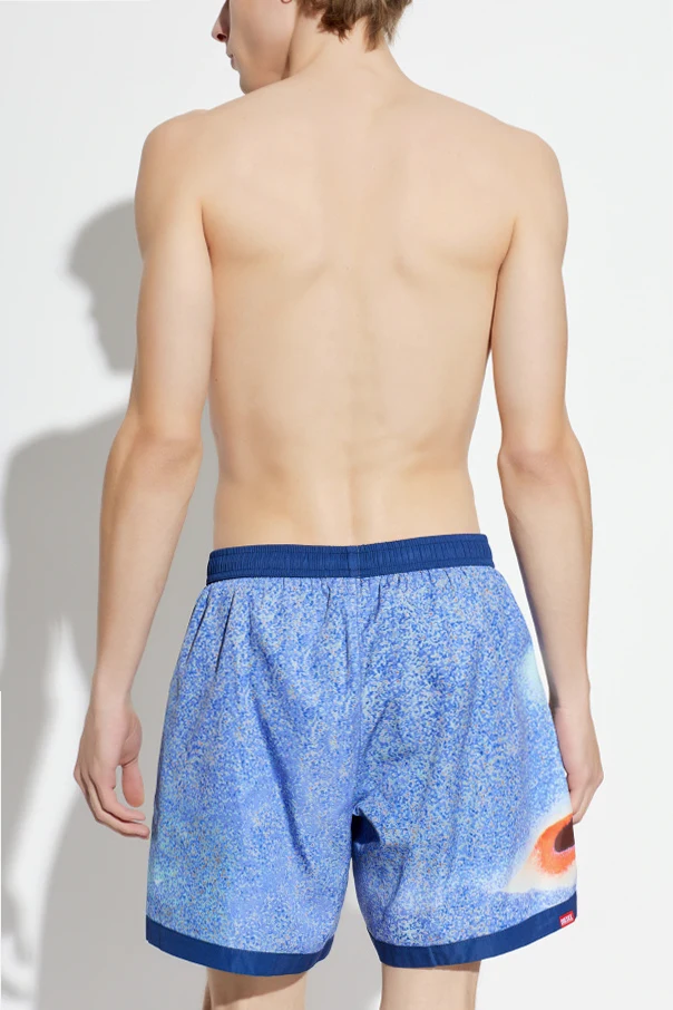 Szorty kąpielowe ‘SOCCER-41-D-POP-C’ marki Diesel to esencja śmiałego stylu i finezyjnej lekkości. Klasyczna, luźna linia subtelnie podkreśla sylwetkę, kończąc się powyżej kolana. Zastosowany niebieski materiał o lekko połyskującej fakturze zapewnia komfort oraz szybkie wysychanie, czyniąc je znakomitym wyborem na wyrafinowany relaks nad wodą.