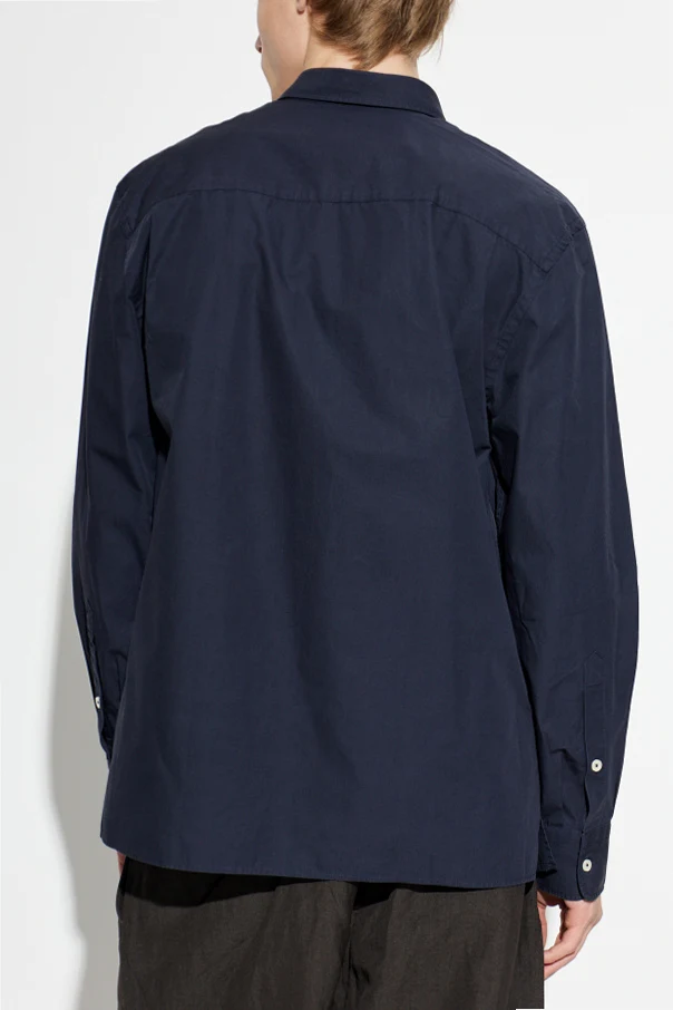 Koszula ‘Lionel’ z ekskluzywnej kolekcji marki Officine Generale to synonim ponadczasowej elegancji w najczystszej formie. Utrzymana w głębokim, granatowym kolorze, urzeka subtelną uniwersalnością oraz wyrafinowaną prostotą. Klasyczny, lekko luźny krój z długimi rękawami gwarantuje swobodę ruchu, a drobiazgowo zaprojektowane mankiety i kołnierzyk podkreślają kunszt wykonania.