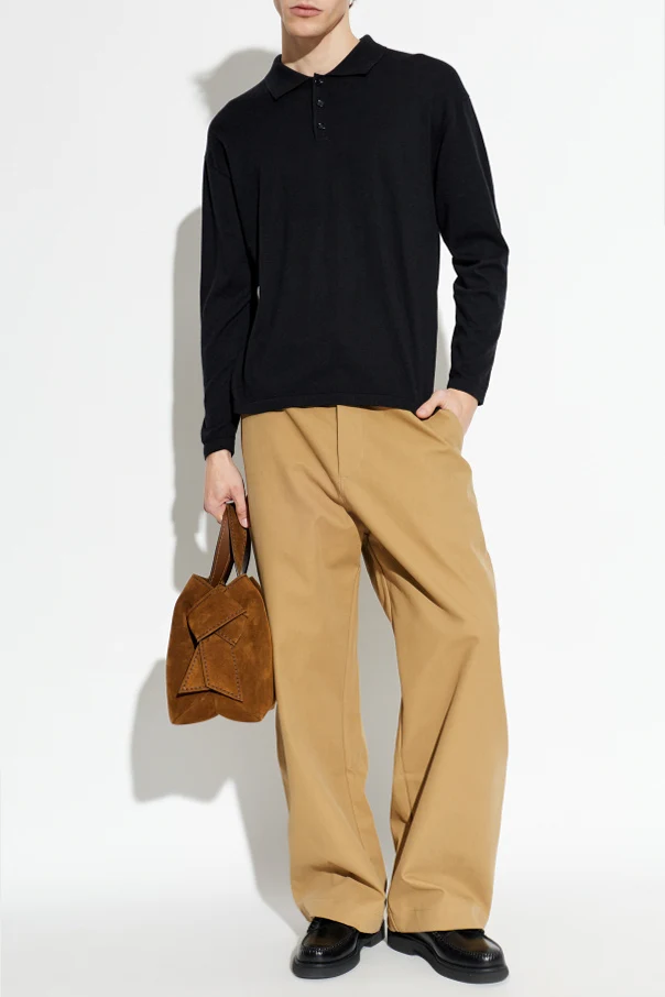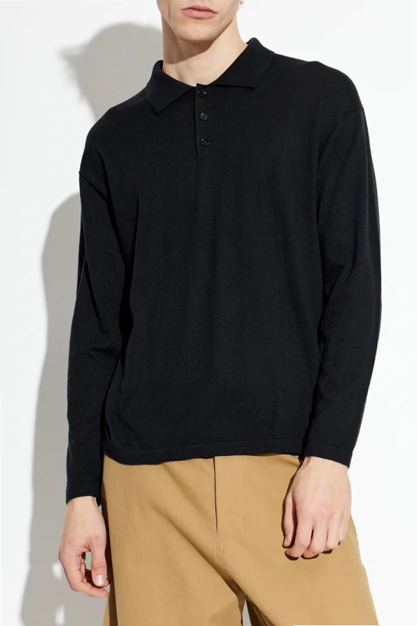 Kołnierzyk polo oraz krótka listwa z trzema eleganckimi guzikami podkreślają luksusowy, lecz powściągliwy charakter swetra. Dzianina o drobnym, jednolitym splocie powstała z wysokogatunkowej mieszanki bawełny i kaszmiru, gwarantując miękkość oraz wyrafinowaną strukturę bez zbędnych wzorów i nadruków.