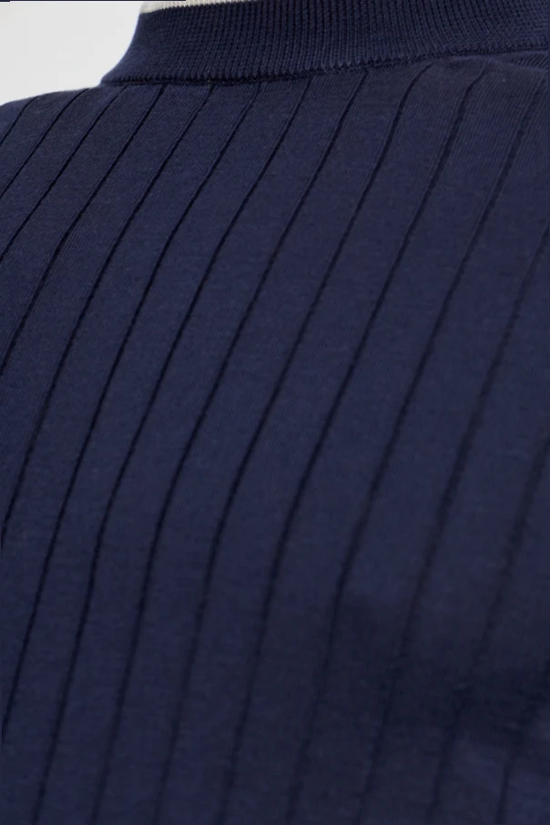 GRANATOWY Prążkowany t-shirt z okrągłym dekoltem
