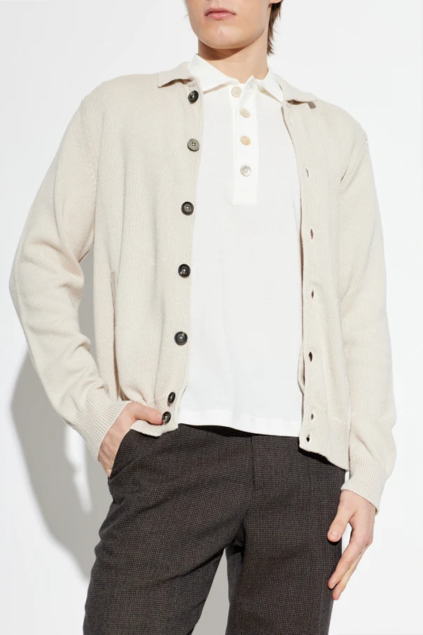 Kardigan z kieszeniami autorstwa renomowanej marki Eleventy to ukłon w stronę ponadczasowej elegancji i wyrafinowania. Uszyty z luksusowej dzianiny o wyczuwalnej miękkości oraz wyrazistej, gładkiej strukturze, zachwyca kremowym kolorem podkreślającym subtelny charakter stylizacji.