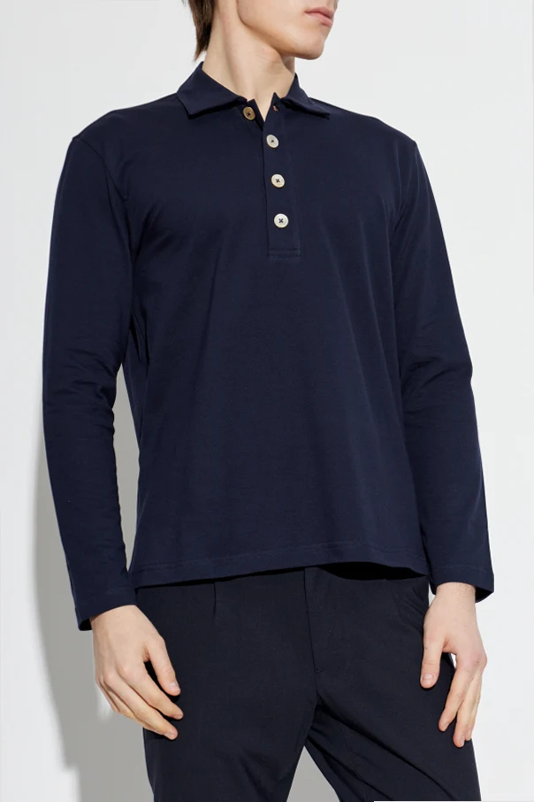 Bawełniane polo z długimi rękawami to esencja szykownej prostoty i wyrafinowanego stylu. Utrzymane w głębokim, granatowym odcieniu, stanowi doskonałą propozycję dla mężczyzn ceniących klasykę i dyskretną elegancję. Lekko luźny, klasyczny krój z prostym wykończeniem dolnej części gwarantuje swobodę ruchów oraz subtelne podkreślenie sylwetki.