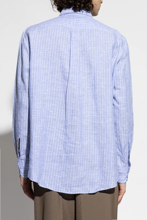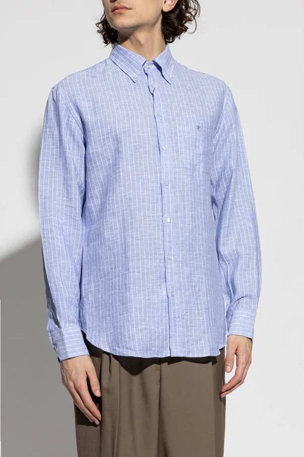 Koszula z kieszenią marki Etro to wyrafinowany wybór dla mężczyzn ceniących dyskretną elegancję. Subtelny wzór pionowych, białych pasków na tle o barwie jasnoniebieskiej harmonijnie łączy klasykę z lekkością formy, podkreślając formalny, a zarazem świeży charakter stroju.
