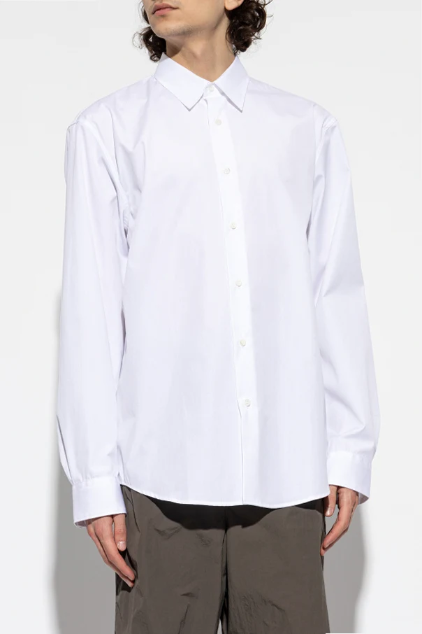 Koszula ‘Caper’ autorstwa Driesa Van Notena to kwintesencja klasycznej elegancji. Wykonana z wysokogatunkowej bawełny, prezentuje się wyjątkowo szlachetnie dzięki gładkiej, pozbawionej wzoru tkaninie w barwie białej . Prostolinijny regularny krój z wyraźnym zarysowaniem ramion współgra z lekko usztywnionym, klasycznym kołnierzykiem, który doskonale podkreśla formalny charakter koszuli. Długie rękawy wieńczą mankiety zapinane na dwa subtelne guziki, a front ozdabia elegancka listwa z rzędem drobnych, perłowych guzików. Brak zbędnych zdobień tworzy aurę wyrafinowanej prostoty, zaś dopracowane detale wyróżniają ten model w każdej stylizacji.