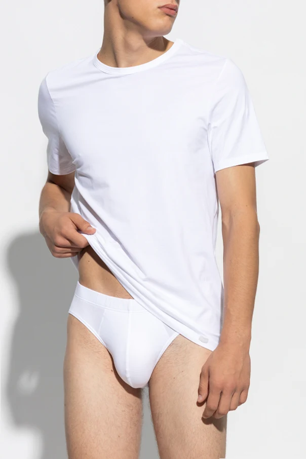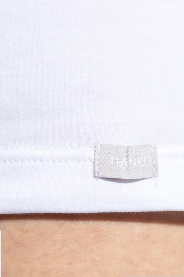 Dwupak białych t-shirtów Hanro. Wykonany z bawełny. Okrągły dekolt wykończony ściągaczem. Krótkie rękawy.