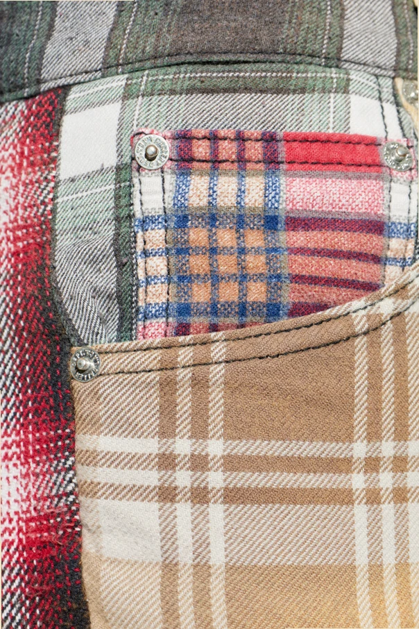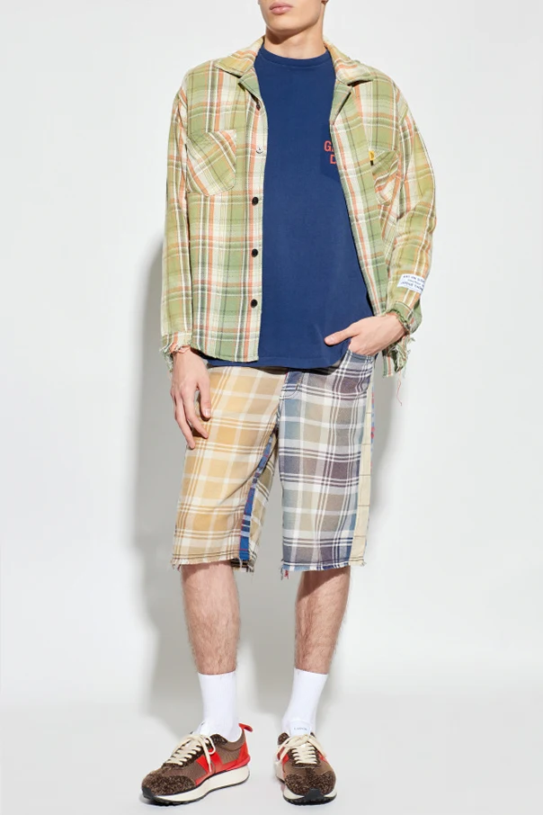 Szorty ze wzorem w kratę autorstwa marki GALLERY DEPT. zachwycają niezwykłym kunsztem wykonania oraz wyrafinowanym rozmachem kolorystycznym. Ten ekskluzywny model – utrzymany w barwach multikolor – charakteryzuje się prostym, luźnym fasonem z nogawkami sięgającymi poniżej kolana, zapewniając komfort i swobodę ruchu.