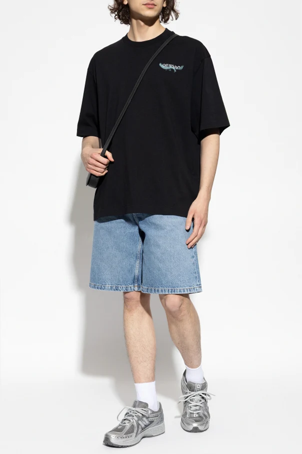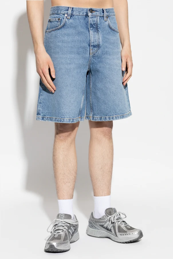 Jeansowe szorty z logo marki Off-White to kwintesencja współczesnej elegancji w męskiej garderobie. Wyróżnia je klasyczny regularny fason z prostymi nogawkami do kolan, które zapewniają wyjątkowy komfort noszenia.