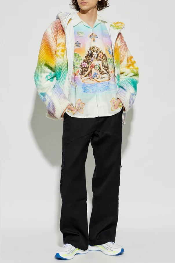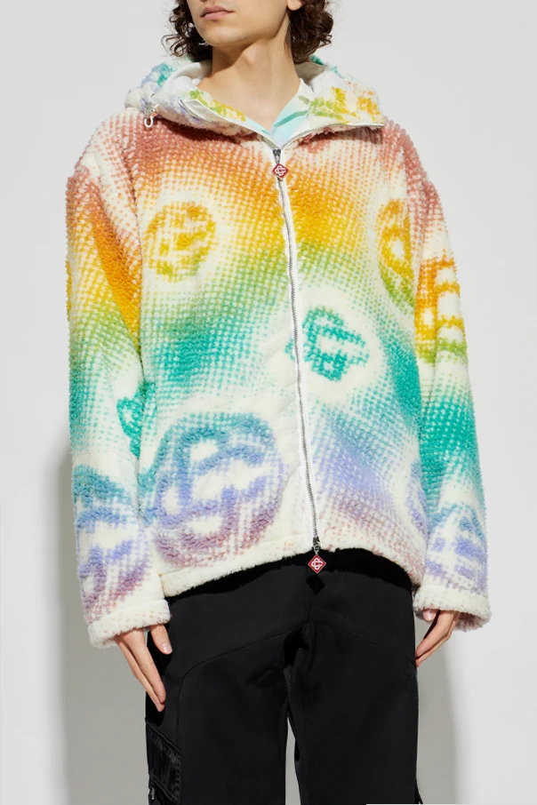 Kurtka z kapturem marki Casablanca emanuje wyrafinowaną nonszalancją oraz unikatowym stylem. Jej klasyczny, prosty krój został delikatnie poszerzony, nadając sylwetce swobodny, nowoczesny charakter. Obszerny kaptur tworzy nie tylko praktyczne, lecz także eleganckie wykończenie całości.