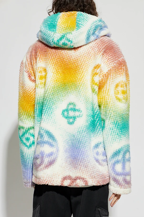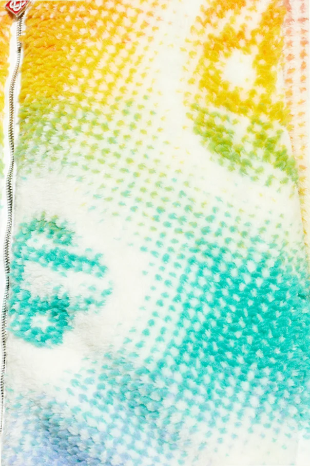 Multikolorowy wzór tie-dye, z artystycznie rozmytymi motywami oraz wyrazistymi akcentami nawiązującymi do znaku marki, podkreśla wyjątkowość produktu. Kurtka została uszyta z miękkiego, puszystego materiału przypominającego futerko, który otula ciało luksusową miękkością i zapewnia niezwykły komfort noszenia.
