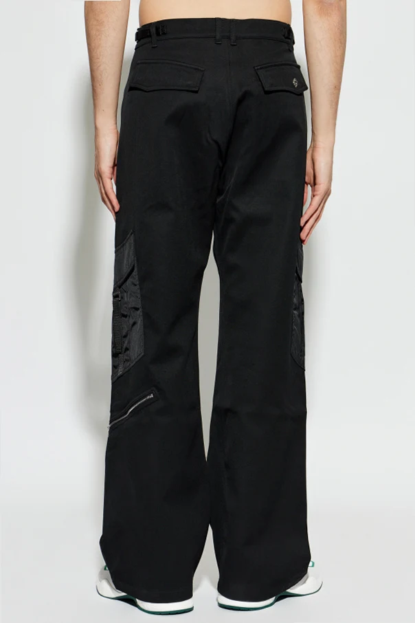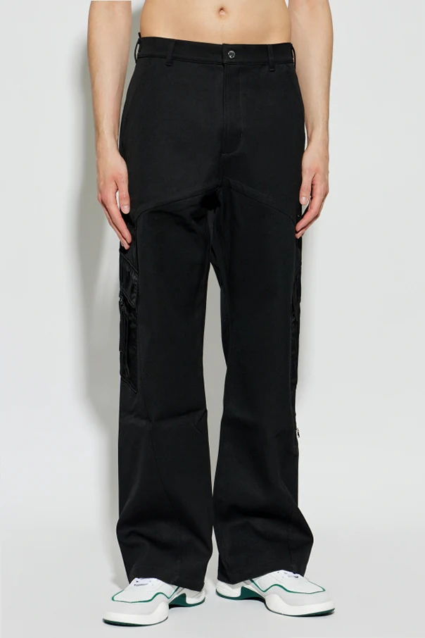 Spodnie typu ‘Cargo’ autorstwa Casablanca stanowią synonim ponadczasowej elegancji połączonej z miejskim sznytem. Całość utrzymana jest w głębokim, czarnym kolorze, który nadaje sylwetce wyrafinowania i wszechstronności. Gładka tkanina bawełniana o szlachetnym, matowym wykończeniu subtelnie kontrastuje z błyszczącymi, syntetycznymi detalami przy kieszeniach.